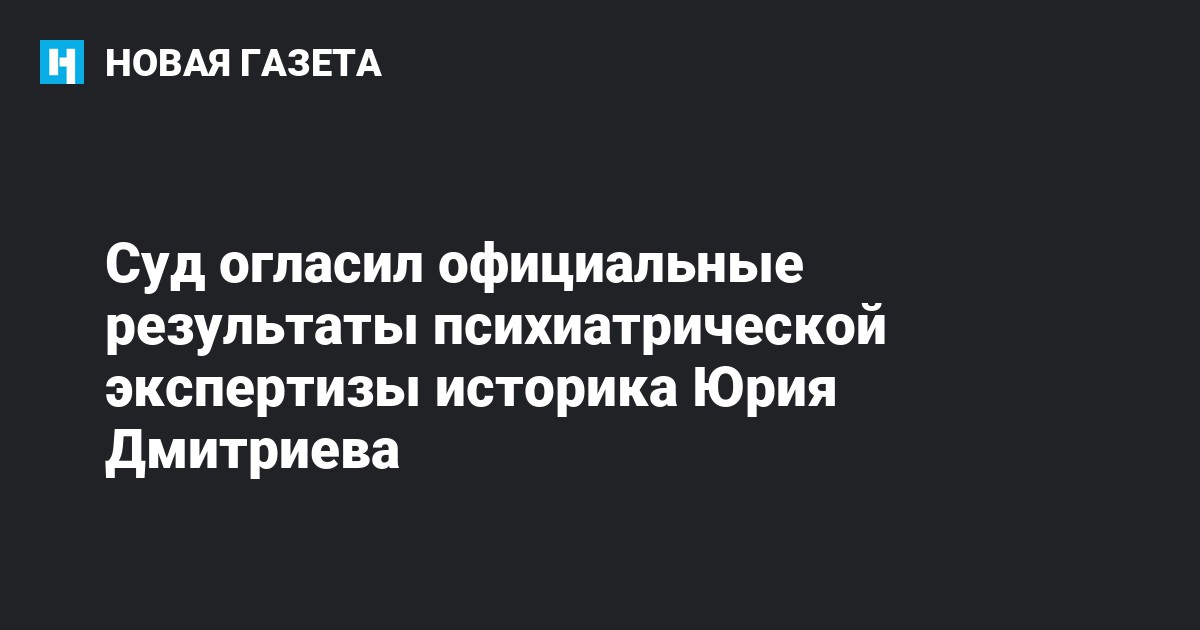 Руководитель карельского отделения общества «Мемориал» Юрий Дмитриев психически здоров и не имеет сексуальных отклонений. Об этом журналистам сообщил его адвокат Виктор Ануфриев. Официальный текст экспертизы, проведенной в Центре им. Сербского, был зачитан 27 февраля в закрытом заседании Петрозаводского городского суда.