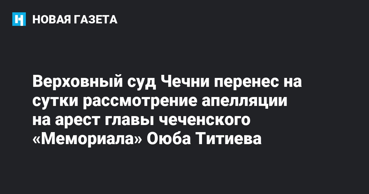 В Верховном суде Чеченской республики состоялось рассмотрение апелляции адвокатов руководителя Чеченского отделения «Мемориал» Оюба Титиева по поводу избранной меры пресечения. Ранее, 25 апреля, Старопромысловский районный суд на месяц продлил арест Оюбу Титиеву. Продлил фактически тайком — о предстоящем заседании даже не уведомили защитников. Адвокат Марина Дубровина о назначенном заседании узнала случайно, за несколько часов до его начала.