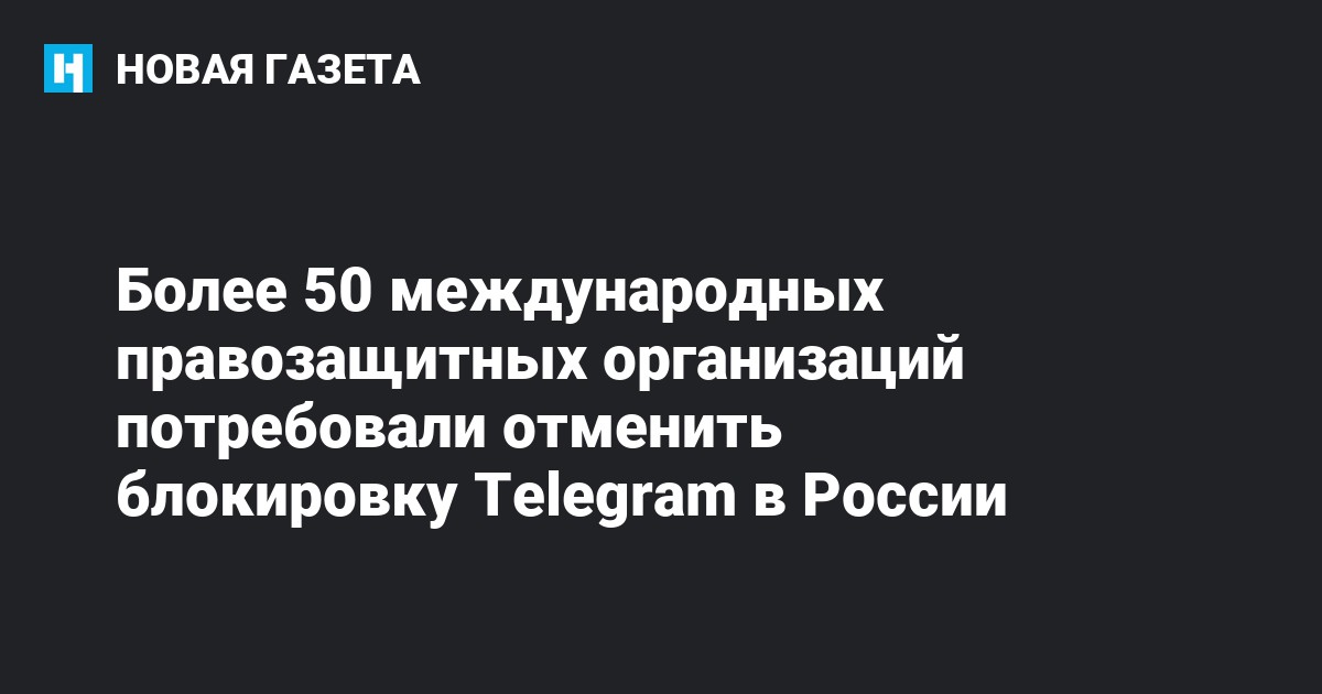 53 международные и российские организации, занимающиеся защитой прав СМИ и интернет-свобод, осудили блокировку мессенджера Telegram и призвали Россию прекратить «атаку на свободу выражения мнения и неприкосновенность частной жизни в интернете». Соответствующее заявление оказалось в распоряжении редакции «Новой газеты».