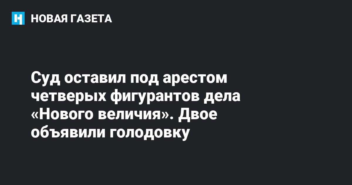 Фигуранты дела «Нового величия» были заключены под стражу 16 марта решением Дорогомиловского районного суда Москвы. Их обвиняют по ст. 282.1 УК РФ (организация экстремистского сообщества).