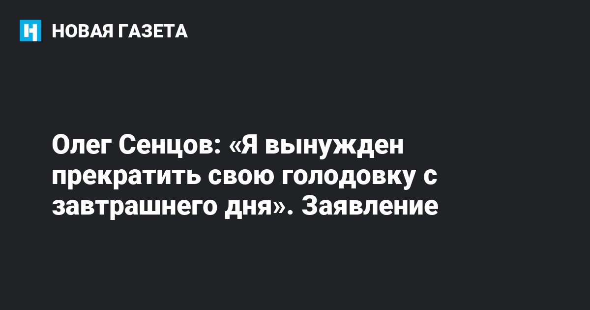 Украинский режиссер Олег Сенцов, осужденный за терроризм и отбывающий наказание в ямальской колонии, сообщил, что с 6 октября вынужден прекратить голодовку, которую он держал более 140 дней. Об этом он написал в заявлении, которое передал через своего адвоката Дмитрия Динзе.