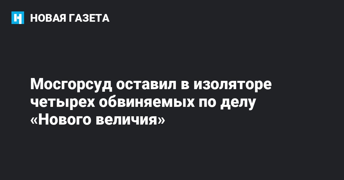 Мосгорсуд оставил в силе постановление о продлении ареста обвиняемым по делу «Нового величия» Руслану Костыленкову, Дмитрию Полетаеву, Петру Карамзину и Вячеславу Крюкову, их оставили под стражей до 13 марта.