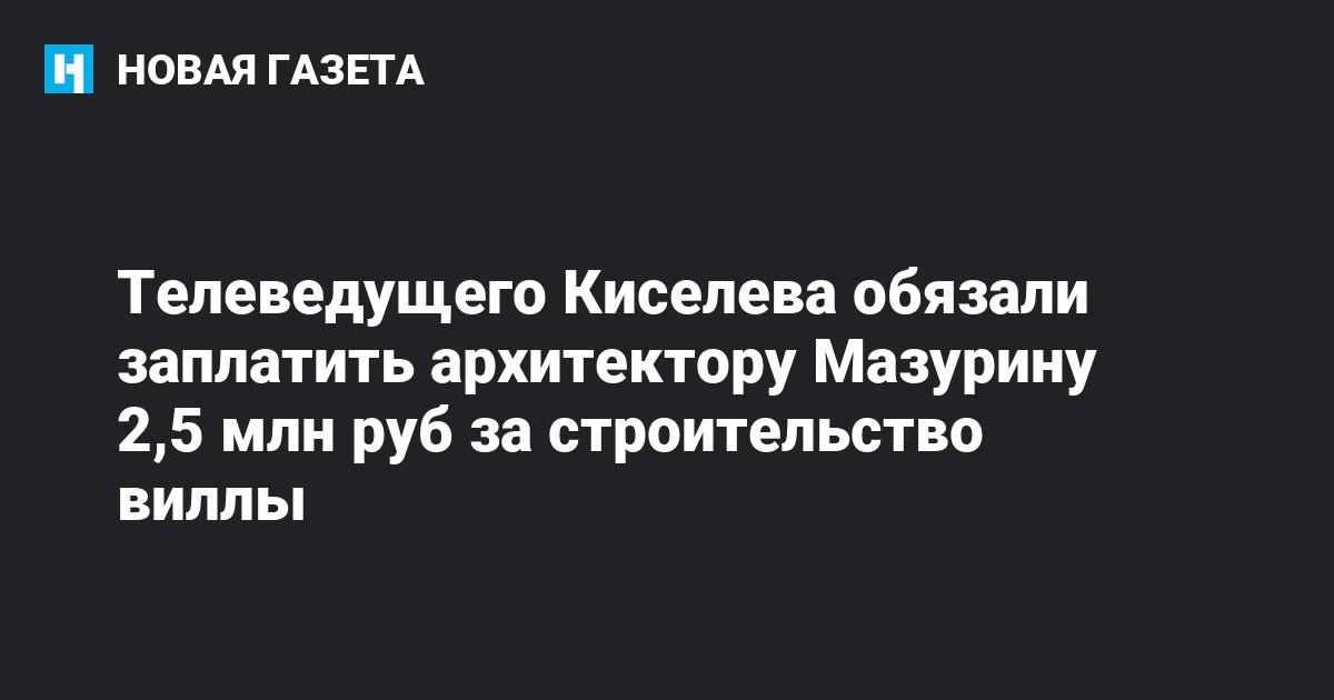 Королёвский городской суд Московской области частично удовлетворил иск крымского архитектора Владимира Мазурина, который потребовал у телеведущего Дмитрия Киселева выплатить долг за строительство виллы в Коктебеле.