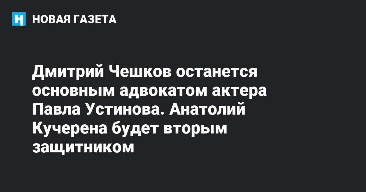 Дмитрий Чешков останется основным адвокатом актера Павла Устинова, осужденного на 3,5 года колонии за «вывих плеча» росгвардейца, а защитник Анатолий Кучерена будет ему помогать. Об этом «Новой газете» рассказала сестра Устинова Юлия.