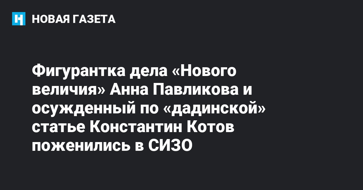 О том, что Павликова и Котов подали заявление о заключении брака, стало известно в день, когда Мосгорсуд рассматривал апелляцию на приговор Котову и оставил решение Тверского суда Москвы без изменений.