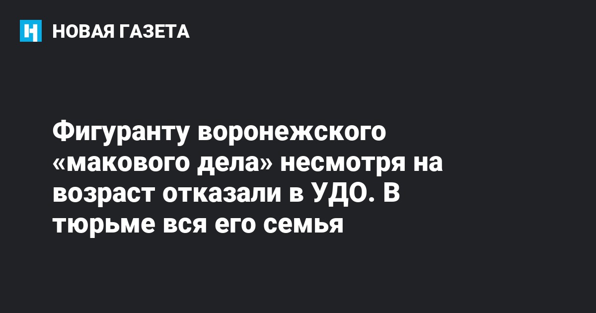 Россошанский районный суд Воронежской области отказал в условно-досрочном освобождении 62-летнему Александру Полухину — фигуранту громкого «макового дела». В 2015 году вместе с женой, младшей дочерью и сестрой жены он был осужден за то, что их семейное кафе торговало кондитерским маком, — это ФСКН квалифицировало как «сбыт наркотиков».
