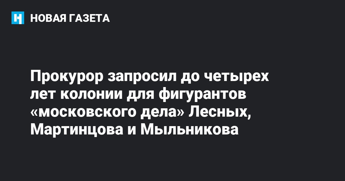 Обвинение просит приговорить Лесных к четырем годам колонии общего режима, Мартинцов – к трем годам шести месяцам общего режима, а Мыльников — к трем года общего режима.