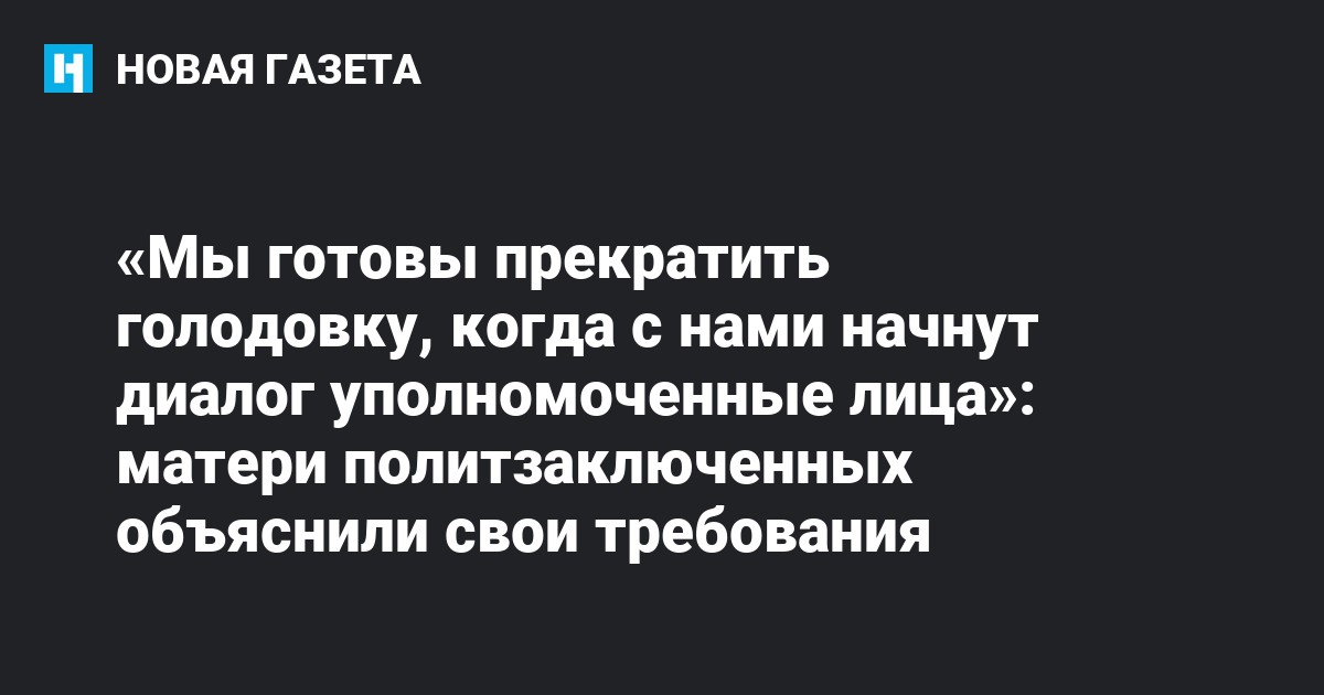 «Мы хотим, чтобы нас услышали. Мы готовы прекратить голодовку, когда с нами начнут диалог уполномоченные лица, например, Владимир Путин. Или кто-то, кто имеет полномочия, чтобы разобраться в наших делах», — заявила Русина на пресс-конференции в редакции «Новой газеты».