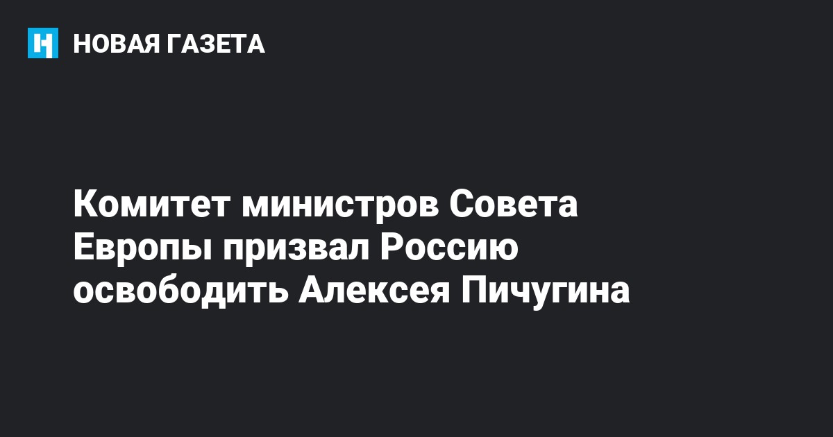 Комитет призвал Российскую Федерацию как можно скорее принять меры для освобождения Пичугина и вновь отметил возможность, которую предоставляет процедура помилования. О решении Комитета министров Совета Европы сообщил на своей странице в Фейсбуке со ссылкой на официальный сайт Совета Европы журналист, председатель Фонда Бориса Немцова Владимир Кара-Мурза-младший.
