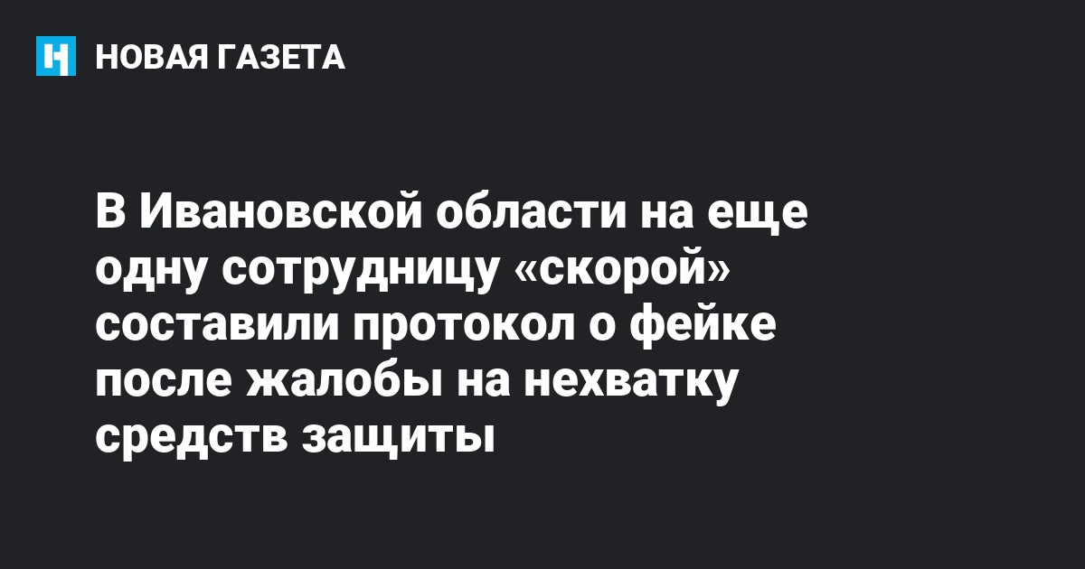 В городе Кинешма Ивановской области на фельдшера станции скорой помощи Дарью Виноградову составили протокол о фейке про коронавирус из-за видеообращения с жалобой на нехватку средств защиты. Об этом «Новой газете» сообщил пресс-секретарь «Открытой России» Константин Фомин.