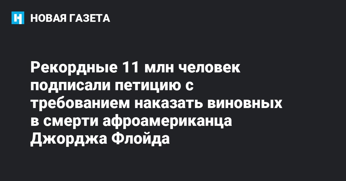 Больше 11,4 млн человек подписали петицию с требованием привлечь к ответственности виновных в смерти афроамериканца Джорджа Флойда в результате жесткого задержания. Это самая большая петиция в истории платформы Change.org.