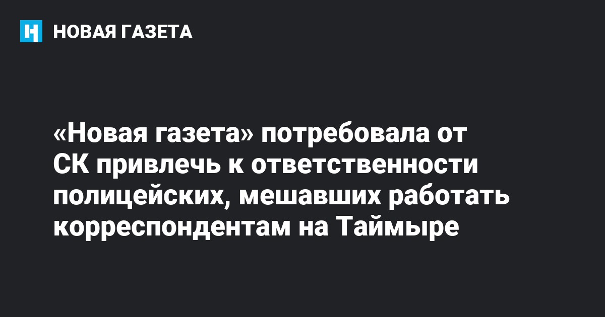 Специальный корреспондент «Новой газеты» Елена Костюченко потребовала привлечь к ответственности сотрудников правоохранительных органов, которые препятствовали работе журналистов, приехавших в Норильск для освещения ситуации с разливом топлива на ТЭЦ-3 Норилько-Таймырской энергетической компании. Заявление о преступлении направлено на имя главы Следственного комитета Александра Бастрыкина.