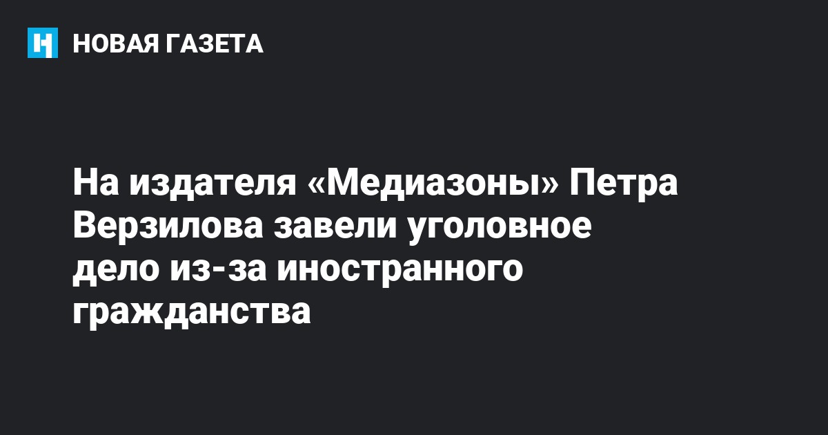 На издателя «Медиазоны» Петра Верзилова завели уголовное дело из-за отсутствия уведомления о наличии иностранного гражданства (ст. 330.2 УК), сообщил он изданию. Отец Верзилова жил в Канаде, а сам он учился там в школе, после чего получил канадский паспорт.