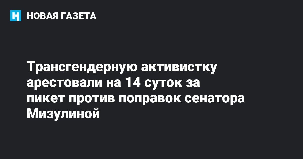 Девушку задержали два дня назад во время одиночных пикетов у здания Госдумы на Охотном ряду. Активисты собрались там, чтобы выразить свой протест против поправок в Семейный кодекс, которые 14 июля анонсировала сенатор Елена Мизулина. Сославшись на недавно измененную Конституцию, в которой теперь закреплено понятие брака как «союза мужчины и женщины», она предложила прекратить практику регистрации отношений между лицами одного пола, даже если один из них ранее его сменил. Также она выступила с инициативой запретить таким парам брать детей из детских домов.